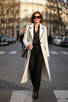 Hayden Aryana | Chic Long White Coat with Contrasting Details