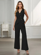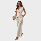 A modern two-piece jumpsuit with a sleeveless top and wide-leg trousers. Crafted with clean tailoring and a comfortable fit, it’s designed to flatter while staying versatile. A stylish essential that works from desk to dinner.